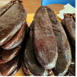 완성된 어란은 이렇게 얇게 썰어주어 조금씩 음미해 줘야 진가를 안대요.